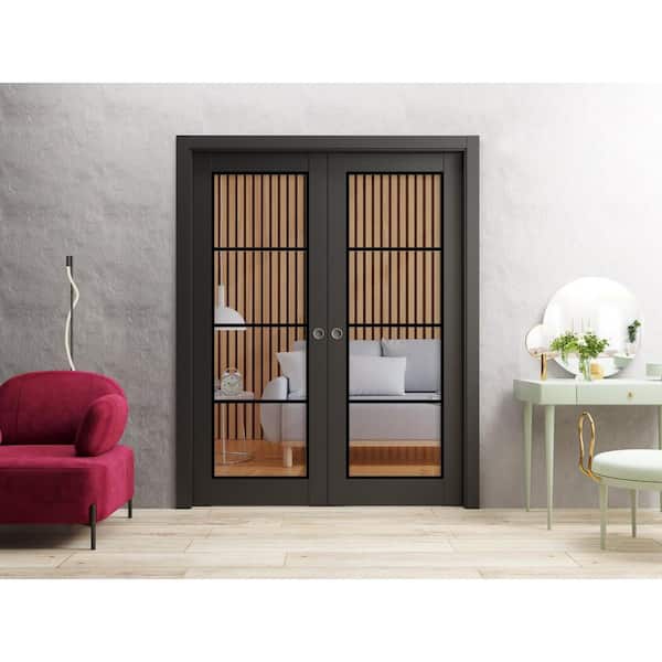 48 in. x 96 in. 2 Panel Black Matte Finished MDF Sliding Door with Hardware