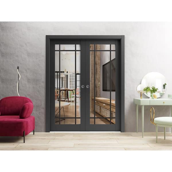 48 in. x 96 in. 2 Panel Black Matte Finished Solid Wood Sliding Door with Hardware