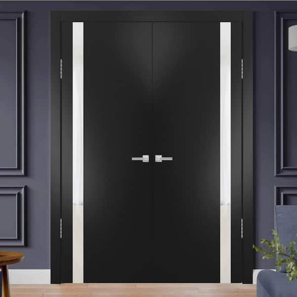48 in. x 96 in. 2 Panel Black Matte Finished Solid Wood Sliding Door with Hardware