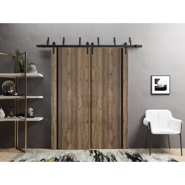 48 in. x 96 in. 2 Panel Walnut Solid Wood with Honeycomb Sliding Barn Door with Hardware Kit