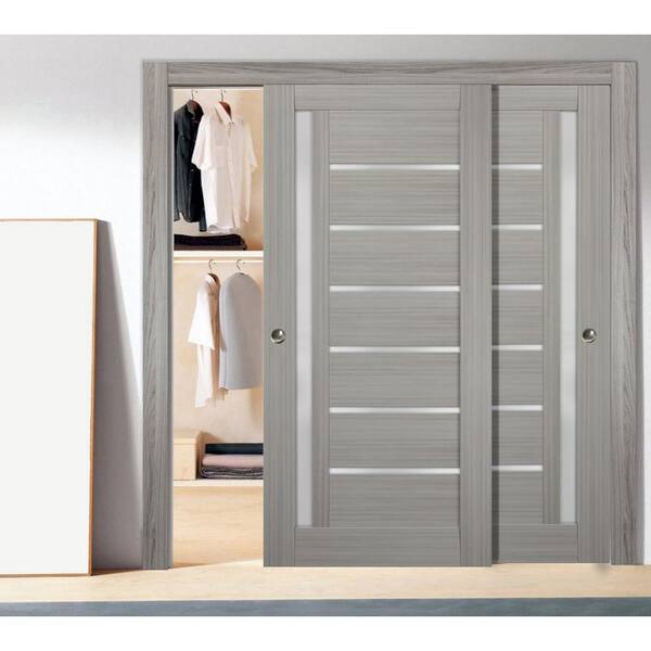 48 in. x 96 in. Single Panel Gray MDF Sliding Door with Top Mount Kit