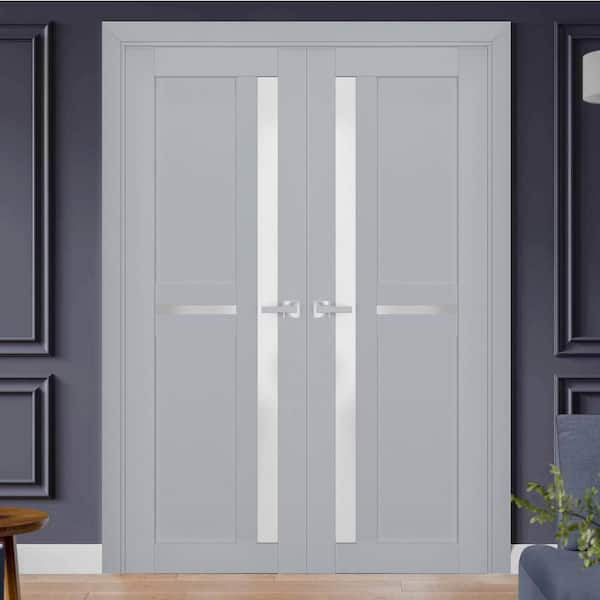 56 in. x 80 in. 2 Panel Matte Grey Finished Solid Wood Sliding Door with Hardware