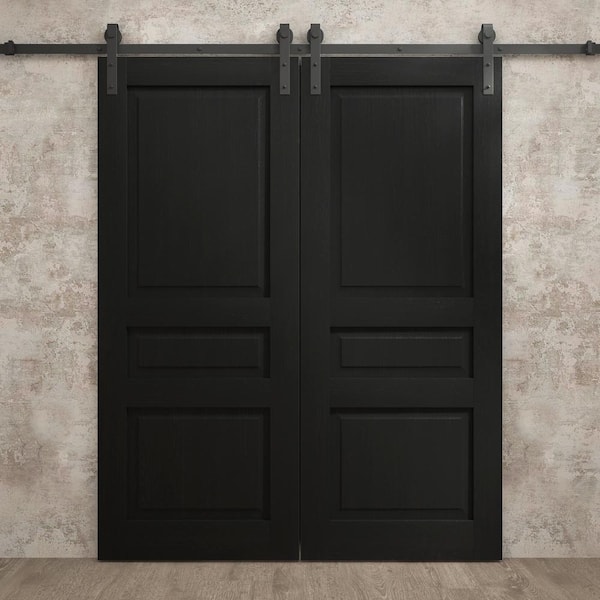 56 in. x 84 in. Painted Black Oak Solid Wood Double Barn Door Slab With Hardware