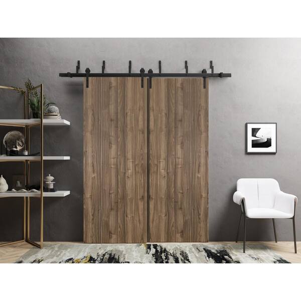 56 in. x 96 in. 2 Panel Walnut Solid Wood with Honeycomb Sliding Barn Door with Hardware Kit