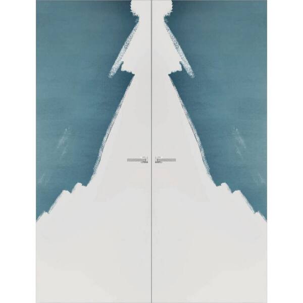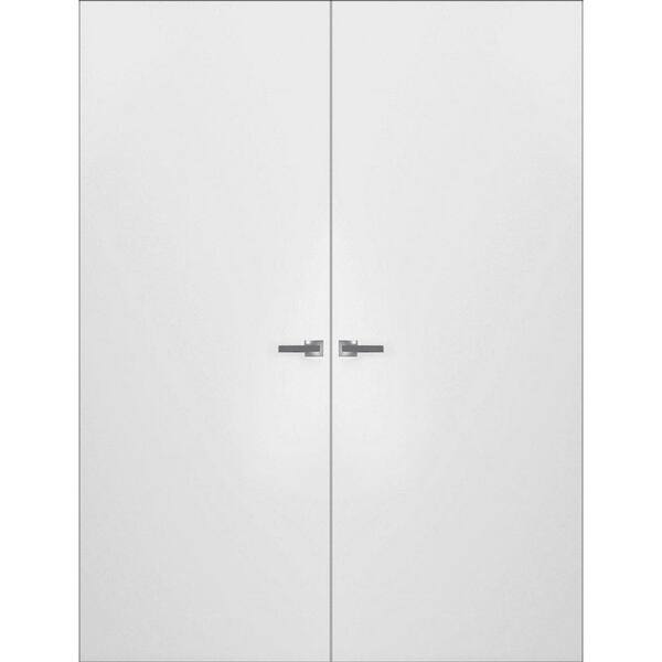 56 in. x 96 in. Unassembled Left-Hand Solid Core White Wood Flush Mount Primed Double Hidden Frameless Door with Hinge