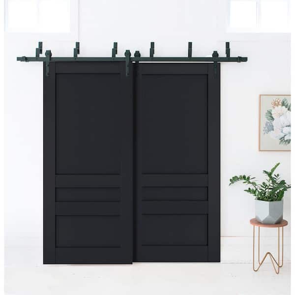 60 in. x 80 in. 2-Panel Antracite Solid Wood Sliding Barn Door with Hardware Kit
