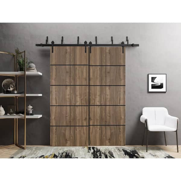 60 in. x 80 in. 2 Panel Walnut Solid Wood with Honeycomb Sliding Barn Door with Hardware Kit
