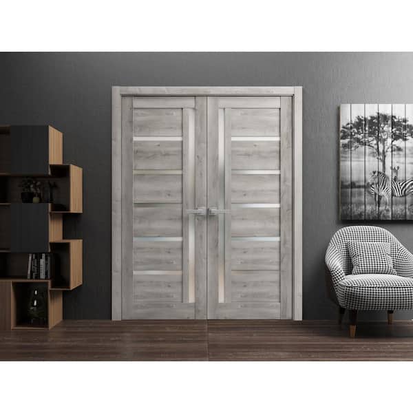 60 in. x 84 in. 2 Panel Nebraska Grey Finished Solid MDF Sliding Door with Hardware