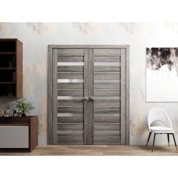 60 in. x 84 in. 2 Panel Nebraska Grey Finished Solid MDF Sliding Door with Hardware