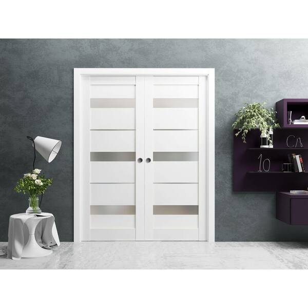 60 in. x 84 in. 2 Panel White Finished MDF Sliding Door with Hardware