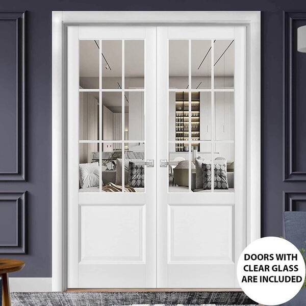 60 in. x 84 in. 2 Panel White Finished Solid Wood Sliding Door with Hardware