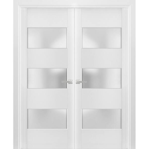 60 in. x 84 in. 2 Panel White Finished Solid Wood Sliding Door with Hardware