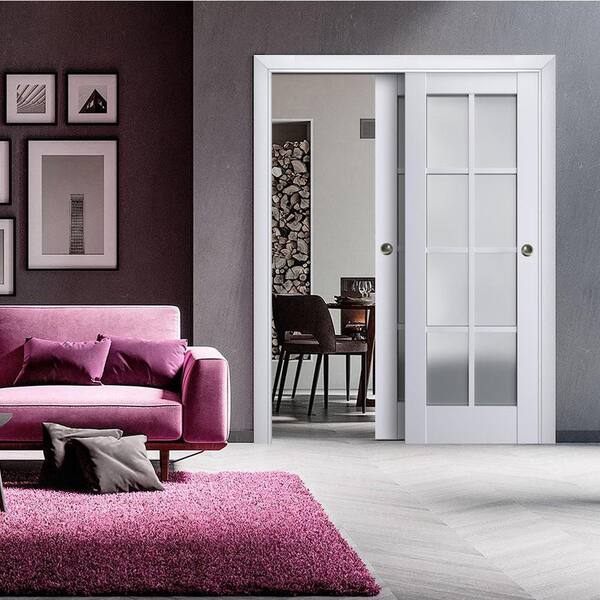60 in. x 96 in. 2 Panel Matte Grey Finished Solid Wood Sliding Door with Hardware