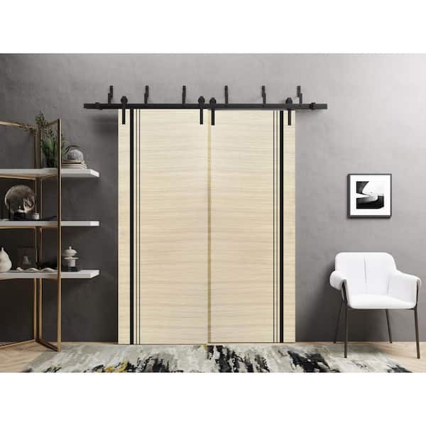 60 in. x 96 in. 2 Panel Natural Veneer Solid Wood with Honeycomb Sliding Barn Door with Hardware Kit