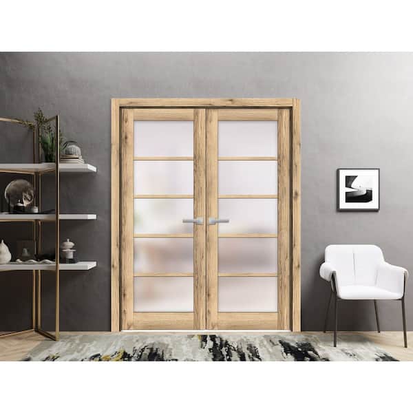 60 in. x 96 in. 2 Panel Oak Finished MDF Sliding Door with Hardware