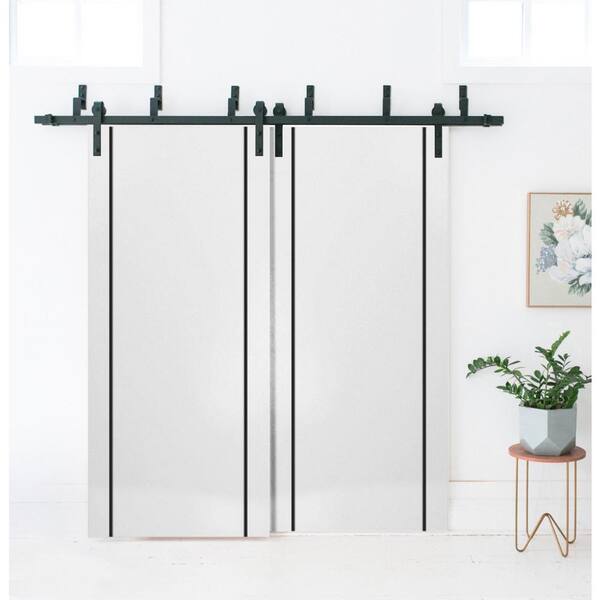 60 in. x 96 in. 2 Panel White Solid Wood with Honeycomb Sliding Barn Door with Hardware Kit