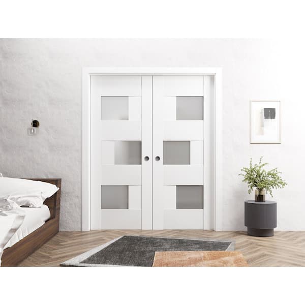 64 in. x 80 in. 2 Panel Matte Grey Finished Solid Wood Sliding Door with Hardware