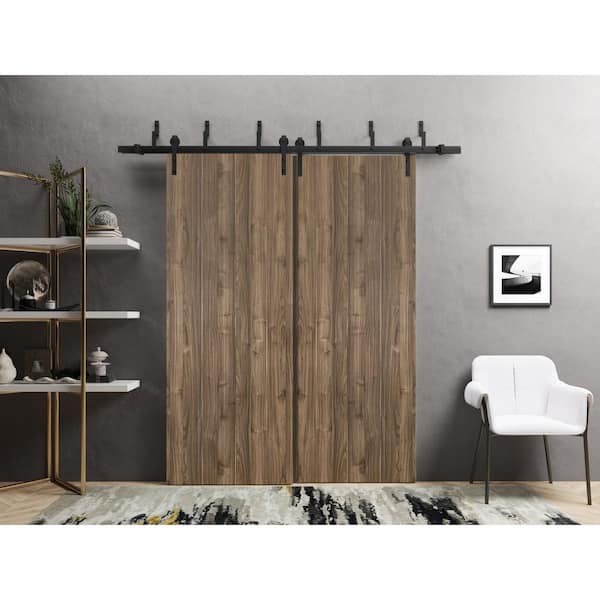 64 in. x 80 in. 2 Panel Walnut Solid Wood with Honeycomb Sliding Barn Door with Hardware Kit