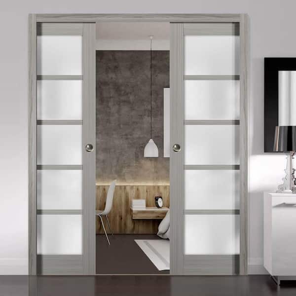 64 in. x 96 in. 2-Panel Gray Ash Finished Solid MDF Sliding Door with Hardware
