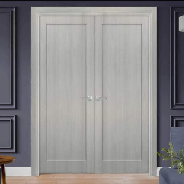 64 in. x 96 in. 2 Panel Gray Ash Finished Solid MDF Sliding Door with Hardware