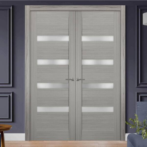 64 in. x 96 in. 2 Panel Gray Ash Finished Solid MDF Sliding Door with Hardware