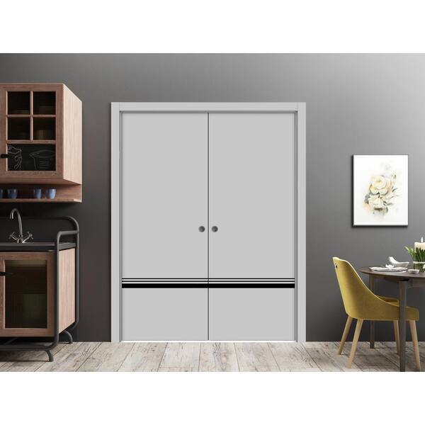 64 in. x 96 in. 2 Panel Matte Grey Finished Solid Wood with Honeycomb Sliding Door with Hardware