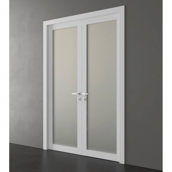 64 in. x 96 in. 2 Panel White Finished Solid Wood Sliding Door with Hardware