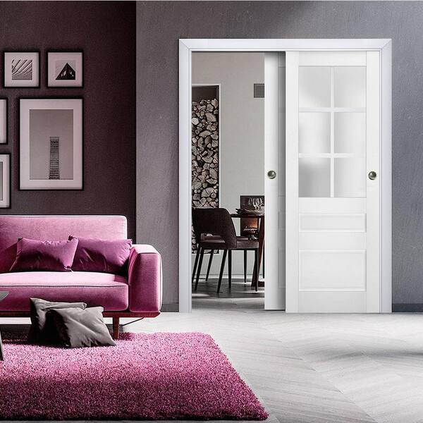 64 in. x 96 in. 2 Panel White Finished Solid Wood Sliding Door with Hardware