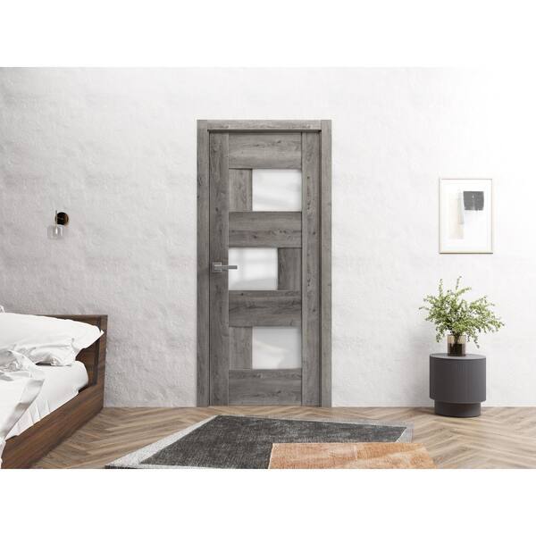 6933 42 in. x 80 in. Right-Hand/Inswing Solid Frosted Glass Nebraska Grey Single Prehung Interior Door with Hardware