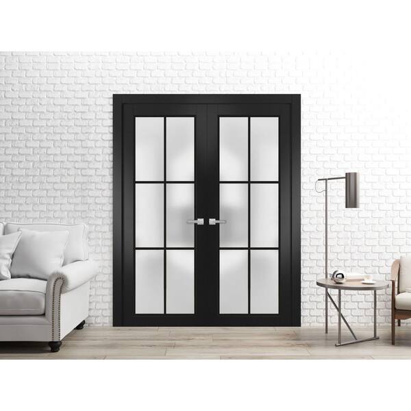 72 in. x 80 in. 2 Panel Black Matte Finished Solid Wood Sliding Door with Hardware