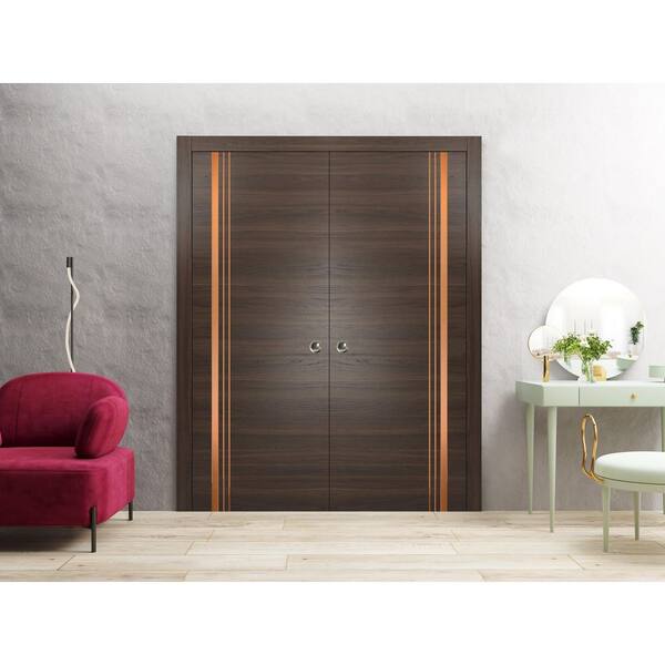 72 in. x 80 in. 2 Panel Chocolate Ash Finished Solid Wood with Honeycomb Sliding Door with Hardware
