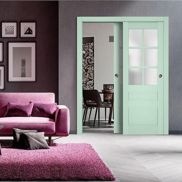 72 in. x 80 in. 2 Panel Matte Grey Finished Solid Wood Sliding Door with Hardware