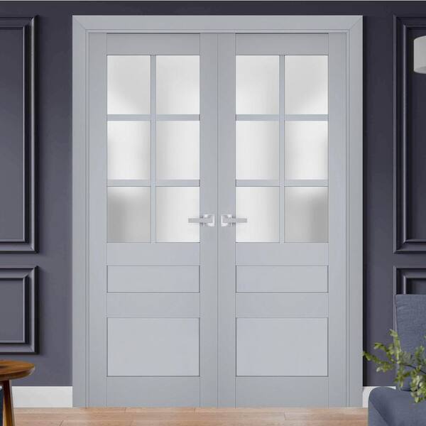 72 in. x 80 in. 2 Panel Matte Grey Finished Solid Wood Sliding Door with Hardware