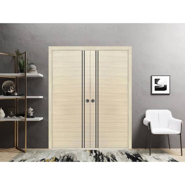 72 in. x 80 in. 2-Panel Natural Veneer Finished Solid Wood with Honeycomb Sliding Door with Hardware