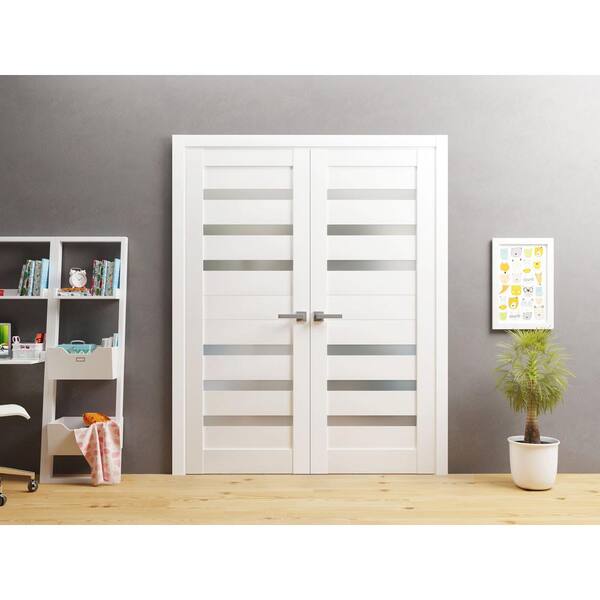 72 in. x 80 in. 2 Panel White Finished MDF Sliding Door with Hardware