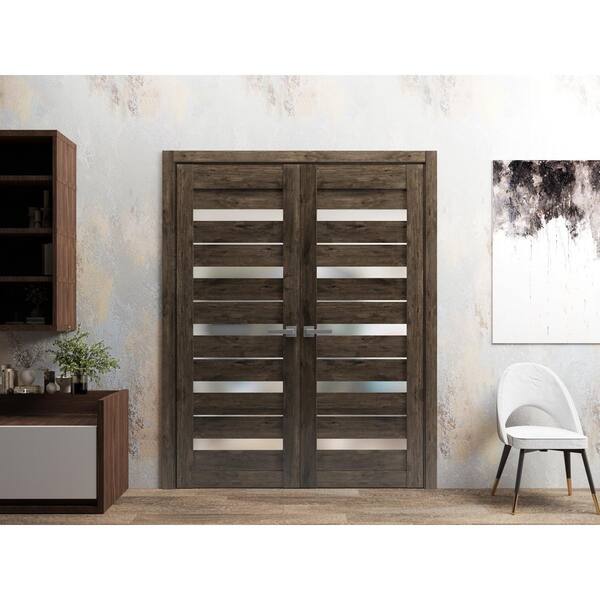 72 in. x 84 in. 2 Panel Cognac Oak Color Finished Solid MDF Sliding Door with Hardware