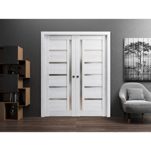 72 in. x 84 in. 2 Panel Nordic White Finished MDF Sliding Door with Hardware