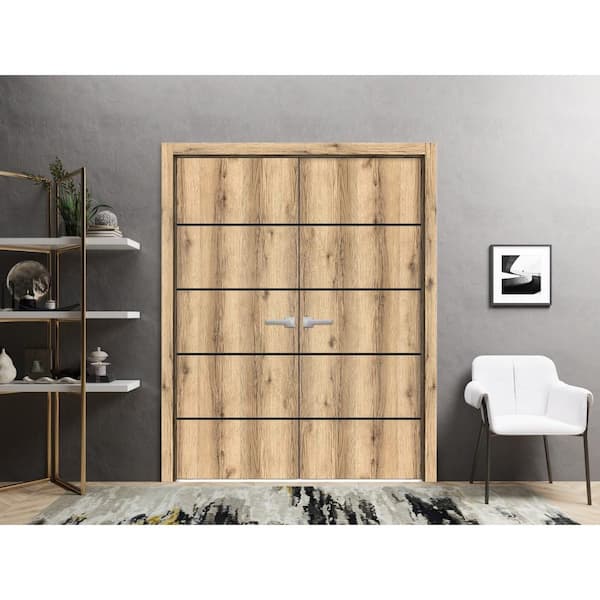 72 in. x 84 in. 2 Panel Oak Color Finished Solid Wood with Honeycomb Sliding Door with Hardware