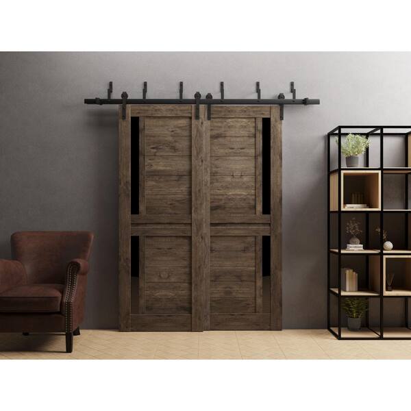 72 in. x 96 in. 2 Panel Frosted Glass Cognac Oak Solid Wood Sliding Barn Door with Hardware Kit