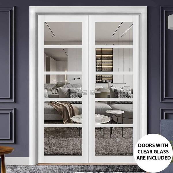 72 in. x 96 in. 2 Panel White Finished Solid MDF Sliding Door with Hardware
