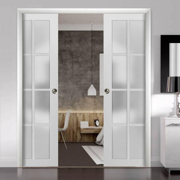 72 in. x 96 in. 2 Panel White Finished Solid Wood Sliding Door with Hardware