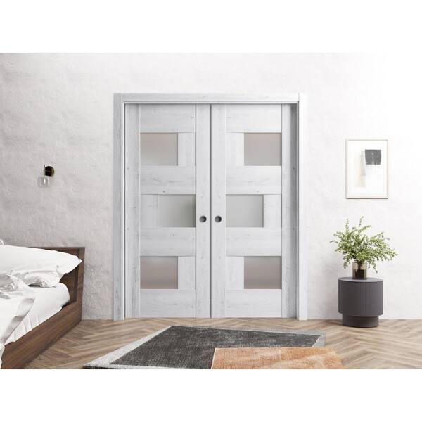 72 in. x 96 in. 2 Panel White Finished Solid Wood Sliding Door with Hardware