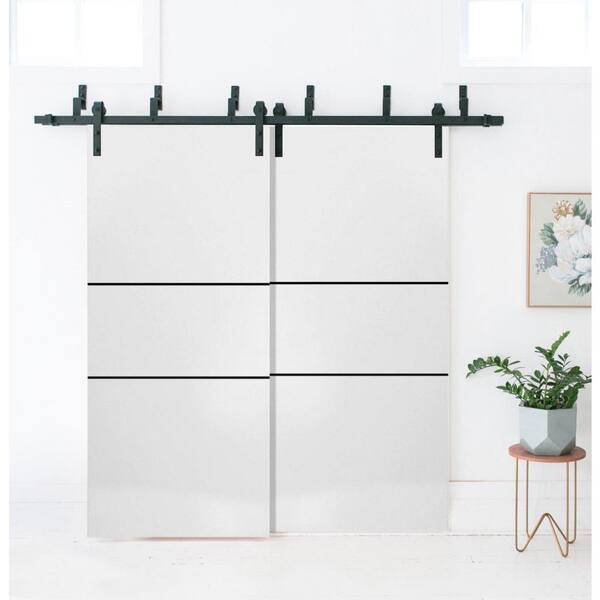 72 in. x 96 in. 2-Panel White Solid Wood with Honeycomb Sliding Barn Door with Hardware Kit