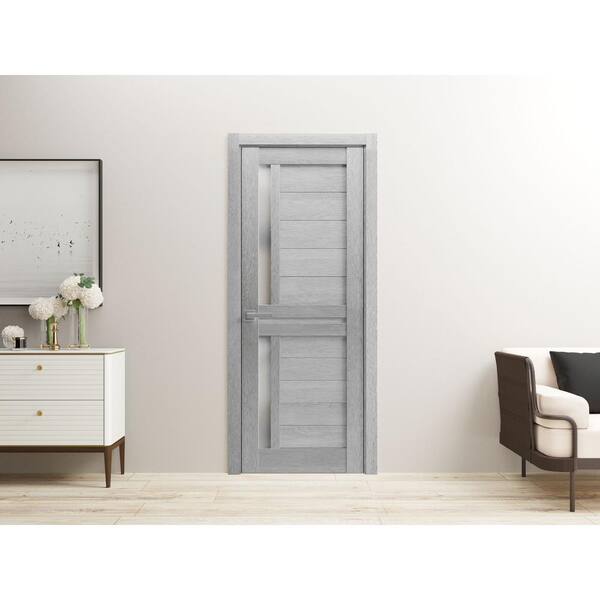 7288 28 in. x 80 in. Right-Hand/Inswing Solid Frosted Glass Light Grey Oak Single Prehung Interior Door with Hardware