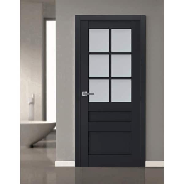 7339 42 in. x 96 in. Right-Hand/Inswing Solid Frosted Glass Antracite Single Prehung Interior Door with Hardware