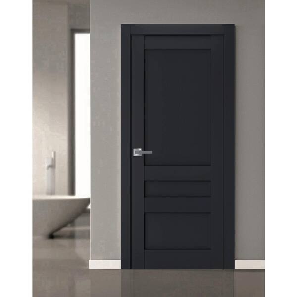 7411 28 in. x 96 in. Right-Hand/Inswing Solid Antracite Single Prehung Interior Door with Hardware