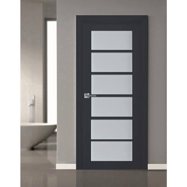 7602 42 in. x 80 in. Right-Hand/Inswing Solid Frosted Glass Antracite Single Prehung Interior Door with Hardware