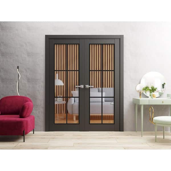 84 in. x 80 in. 2 Panel Black Matte Finished Solid Wood Sliding Door with Hardware
