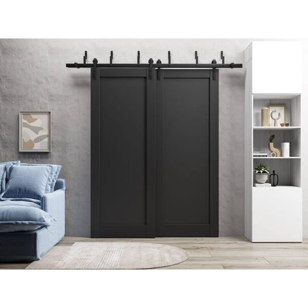84 in. x 80 in. 2-Panel Black Matte Solid MDF Sliding Barn Door with Hardware Kit