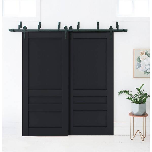 84 in. x 84 in. 2-Panel Antracite Solid Wood Sliding Barn Door with Hardware Kit